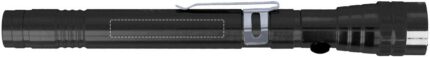 Extendable aluminium torch with 3 LED light and magnet on top and clip on side. 4 Batteries LR44 included. Maximum length 57 cm.