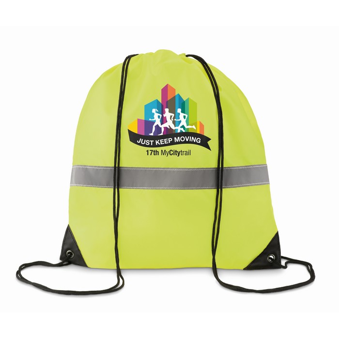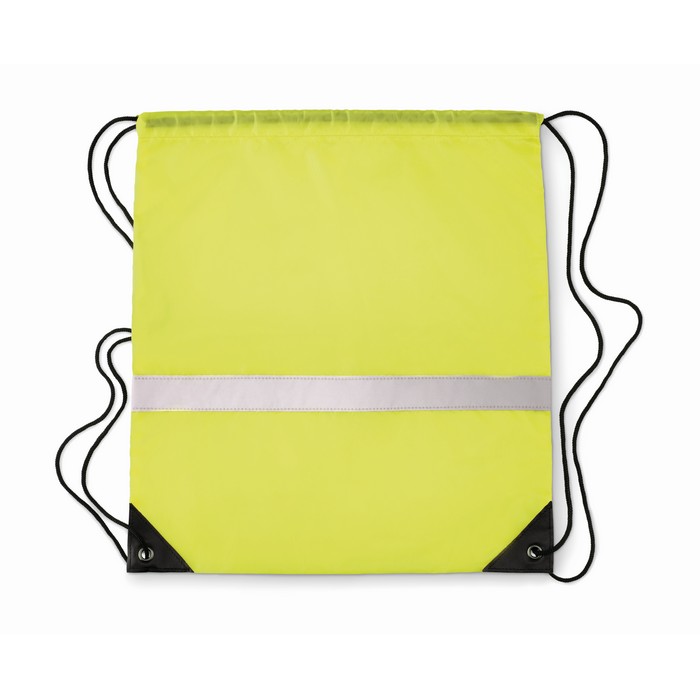 Drawstring bag in 190T polyester with reflective stripe.