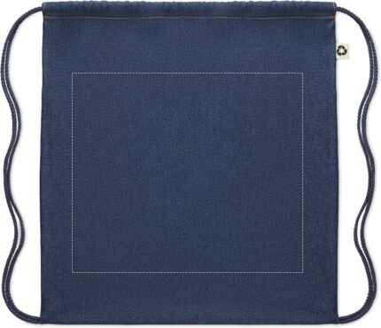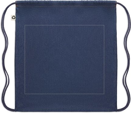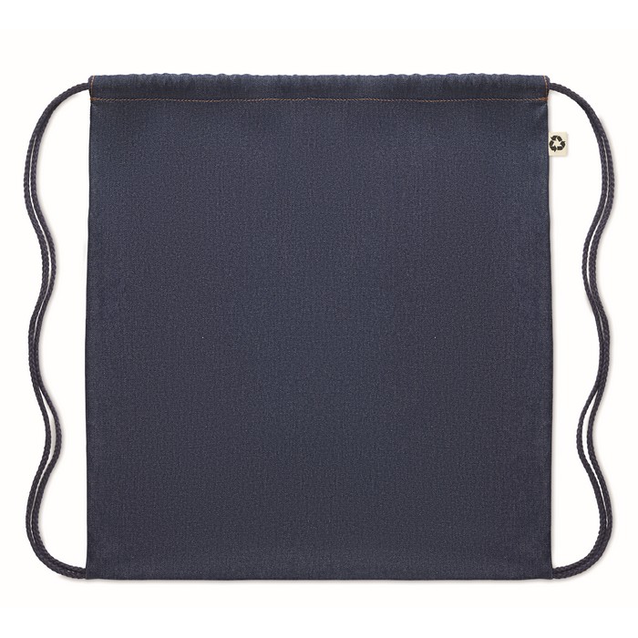 50% Recycled cotton dye denim and 50% cotton drawstring bag. 250 gr/m².