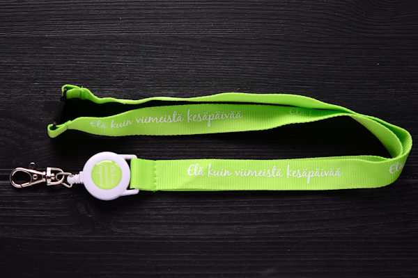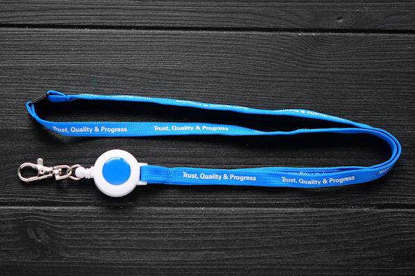 Sublimation on both sides included. 10mm fine polyester, with full colour domed badge reel. Adjustable and with safety breakaway. Size 90cm. Add the optional antibacterial treatment (ISO 20743) to the polyester ribbon.