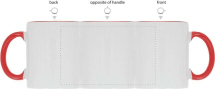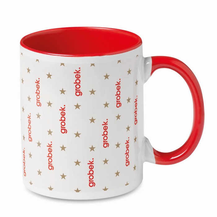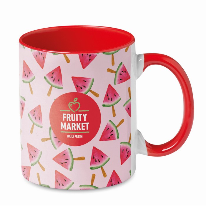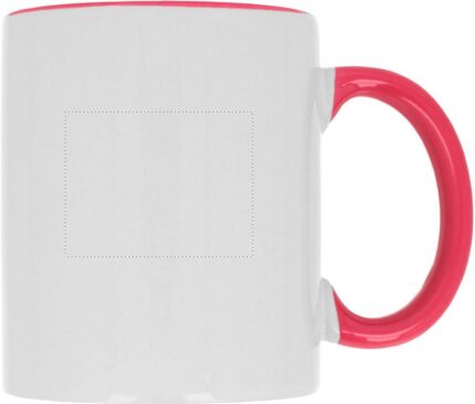 Ceramic mug of 300 ml capacity with special coating for sublimation with coloured handle and inside. Individual packing in white carton box.