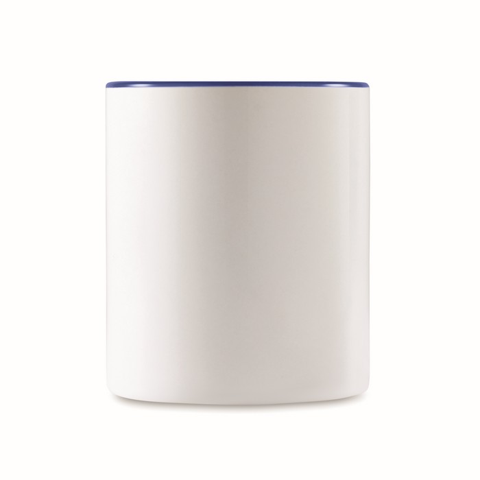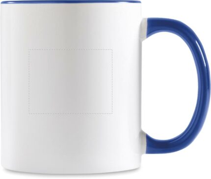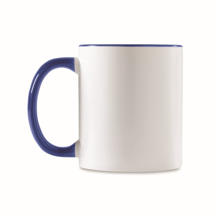 Ceramic mug of 300 ml capacity with special coating for sublimation with coloured handle and inside. Individual packing in white carton box.