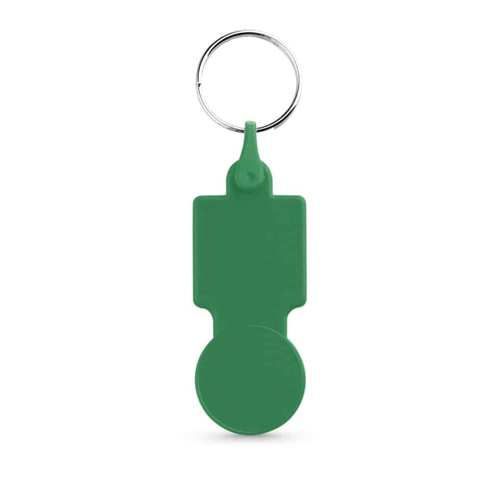 Coin-shapped PS keyring for supermarket cart. Made in Europe. 25 x 60 x 2 mm