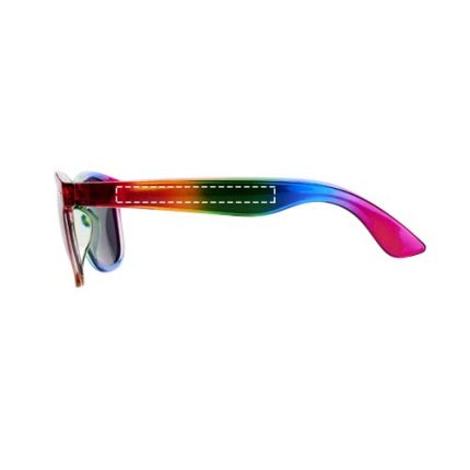 Sun Ray retro design sunglasses with an translucent frame with on trend rainbow colouring finishing. Compliant with EN ISO 12312-1 and UV 400, lenses are graded as category 3.