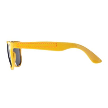 These retro-designed sunglasses are the ideal promotional giveaway during summer festivals, events or other sunny outdoor activities. This eyewear conforms to EN ISO 12312-1, has UV400 lenses which are rated as Category 3, making it the perfect choice for protection against bright sunlight. Thanks to the PC plastic material, the sunglasses are lightweight and comfortable to wear.