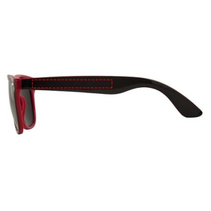 Retro design duo-tone sunglasses with inside pop-up colour finish and category 3 black lenses. Compliant with EN ISO 12312-1 and UV400.