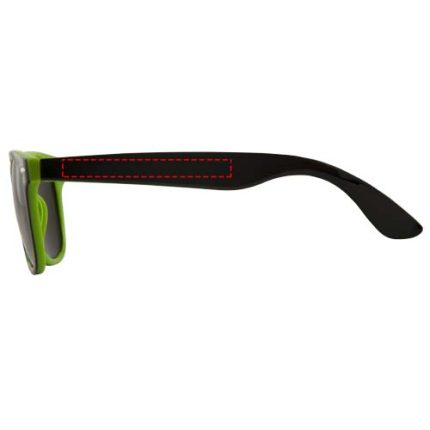 Retro design duo-tone sunglasses with inside pop-up colour finish and category 3 black lenses. Compliant with EN ISO 12312-1 and UV400.