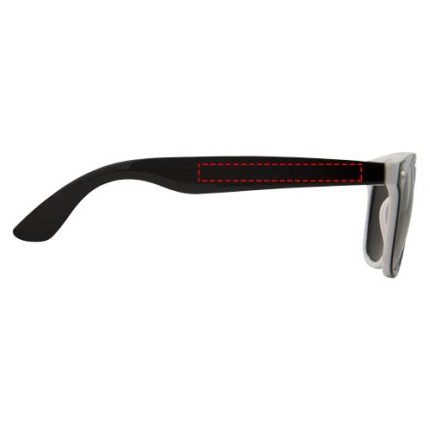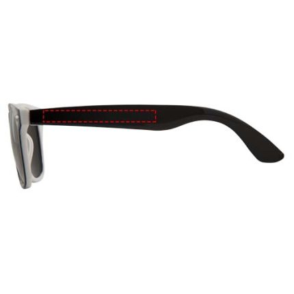 Retro design duo-tone sunglasses with inside pop-up colour finish and category 3 black lenses. Compliant with EN ISO 12312-1 and UV400.