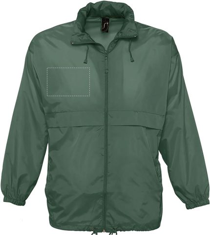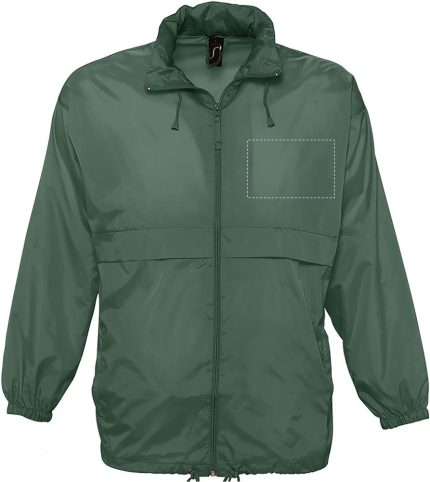 SOL’S SURF Unisex Windbreaker with zipper. One of the most affordable windbreakers on the market. Windproof and water repellent. Two zipped pockets, zipped neck collar to conceal the hood. Drawstring at hem, elasticated cuffs, ventilation eye. Fabric detail: 210g / m² 100% nylon 210T, Water repellent. Only sold with print