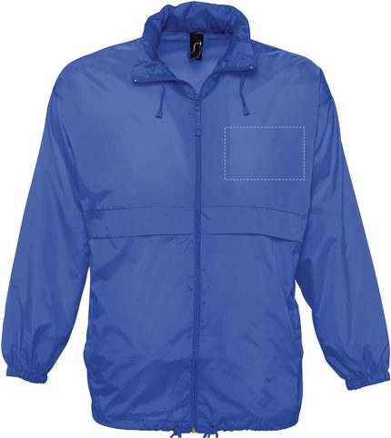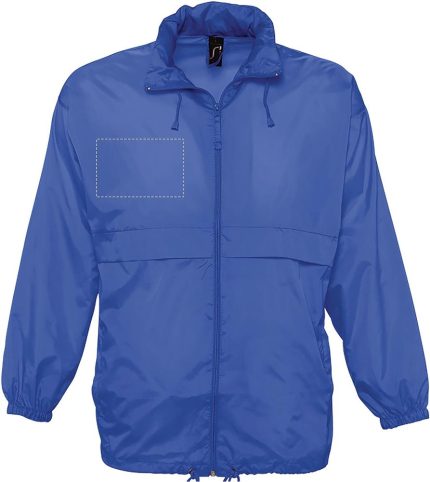 SOL’S SURF Unisex Windbreaker with zipper. One of the most affordable windbreakers on the market. Windproof and water repellent. Two zipped pockets, zipped neck collar to conceal the hood. Drawstring at hem, elasticated cuffs, ventilation eye. Fabric detail: 210g / m² 100% nylon 210T, Water repellent. Only sold with print