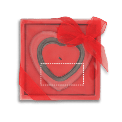 Heart shaped candle and glass base. Gift box included. Box: 93 x 93 x 25 mm