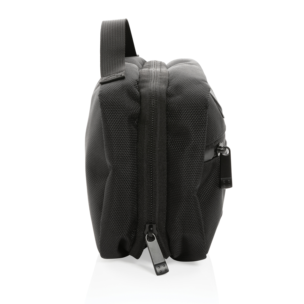 The Swiss Peak AWARE™ RPET Voyager toiletry bag is made from durable 1680D recycled polyester with rich PU details that give the toiletry bag a very sophisticated look. The toiletry bag has two roomy zipper compartments to hold all your toiletry essentials. The exterior is made from 1680D recycled polyester and the lining is 150D recycled polyester. With AWARE™ tracer that validates the genuine use of recycled materials. Each toiletry bag saves 6 litres of water and has reused 10.14 0.5L PET bottles. 2% of proceeds of each product sold containing AWARE™ will be donated to Water.org.