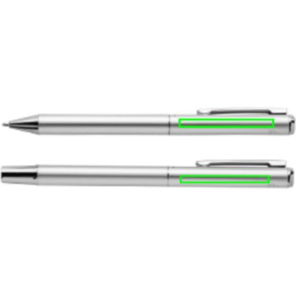 The Cedar RCS certified recycled aluminum pen set is the perfect combination of low impact and style. Made with recycled aluminum, this pen not only looks great but also helps reduce the environmental impact. Its sleek and modern design is sure to impress, making it the perfect writing instrument for any occasion. A guaranteed 1200 metre smooth writing experience with blue Dokumental ink. The rollerball has 400 metre writing length. Made with RCS (Recycled Claim Standard) certified recycled materials. RCS certification ensures a completely certified supply chain of the recycled materials. Total recycled content: 17% based on total item weight. Packed in FSC®certified sleeve box.