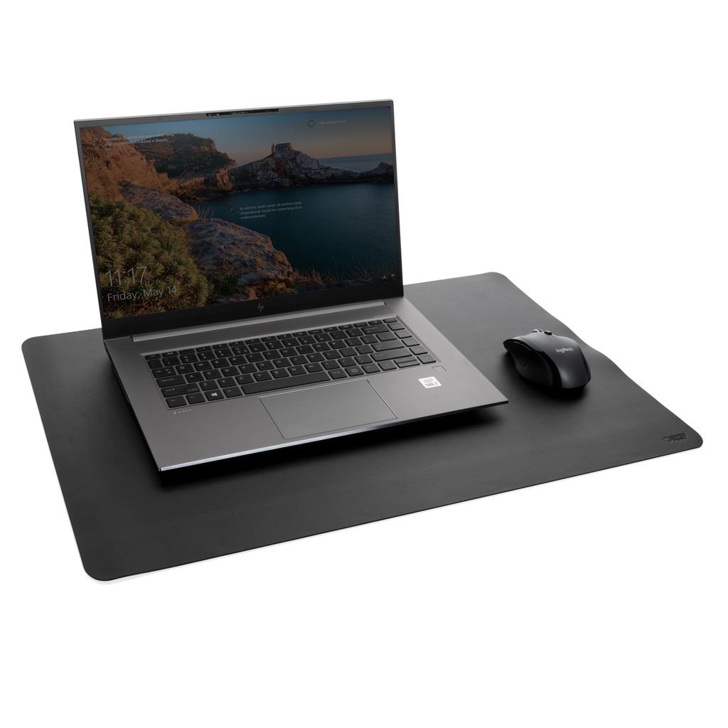 Large sized luxury desk mat made with GRS (global recycle standard) certified recycled materials. GRS certification ensures a completely certified supply chain of the recycled materials. The large and smooth surface is perfect to create a personal workspace wherever you are. Big enough to fit a laptop computer and operate your mouse. Size: 60x 40x 0,2 cm. Extra thick for a perfect work experience. Made with GRS certified recycled PU. Supplied as packed and rolled up with luxury strap. Total recycled content: 57 % based on total item weight PVC free.