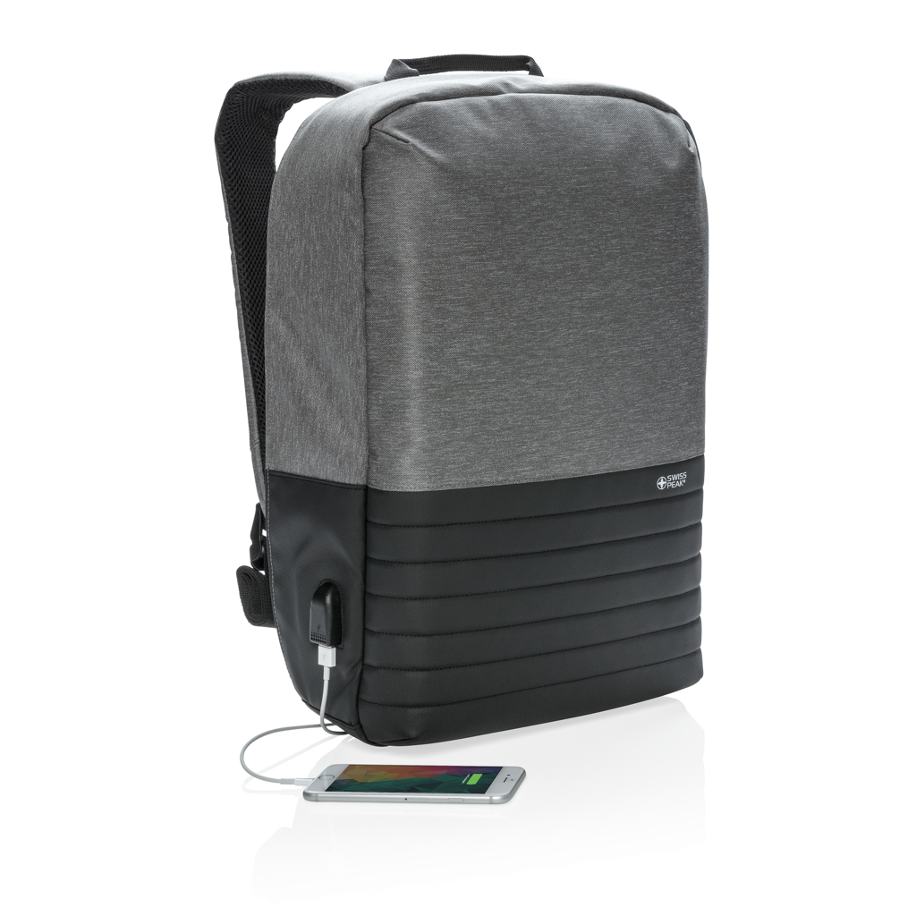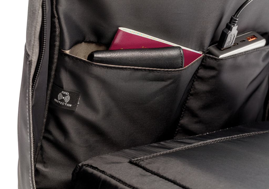 This 15.6″ laptop backpack with anti-theft back opening makes it easy to carry your tech gadgets and personal items around town. Inside padded laptop and tablet compartment. RFID safe sleeve for your wallet and passport. Connect your powerbank easily to the integrated USB charging port and charge your phone or tablet on the go. Hidden easy access back pocket.