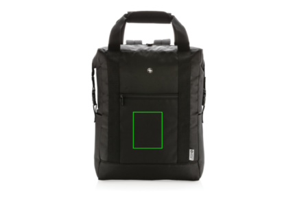 Deluxe 1680D and 600D polyester cooler totepack with extra-large zipped main compartment and zipped front pocket. Large storage space. Double reinforced carrying handles. Including bottle opener. Fits up to 28 cans. PEVA insulation.