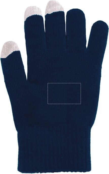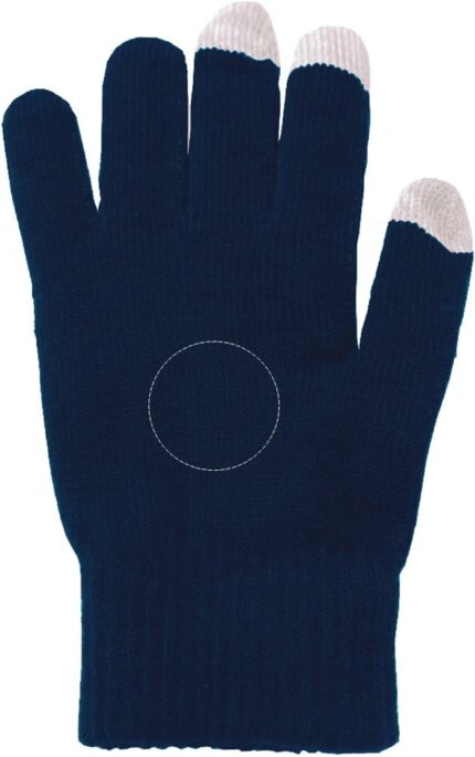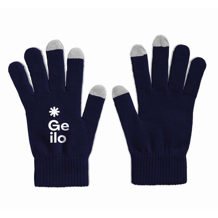 Tactile gloves for smartphone in acrylic. The 3 tactile extremities of the fingers are composed of 0.5% in stainless steel fibre, 89.5% in acrylic, 10% in spandex.