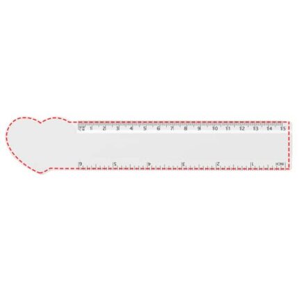 Heart-shaped solid recycled plastic ruler with markings in inches or centimetres.