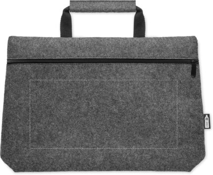 RPET felt 15 inch zippered laptop bag with zippered main compartment and inner pocket.