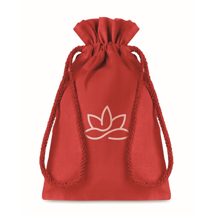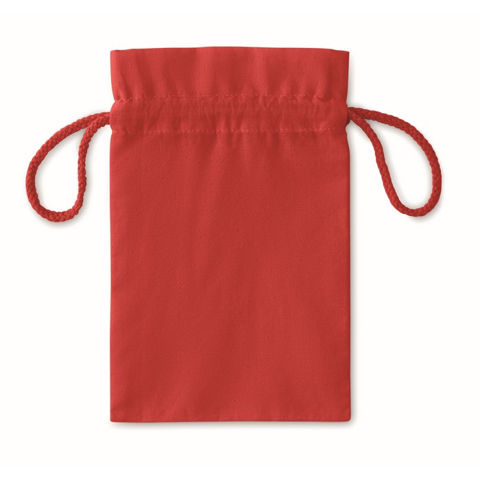 Small gift cotton draw cord bag. Size approx. 14 x 22cm. 105 gr/m².