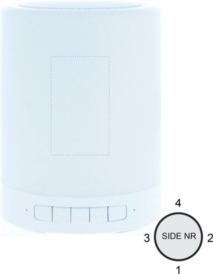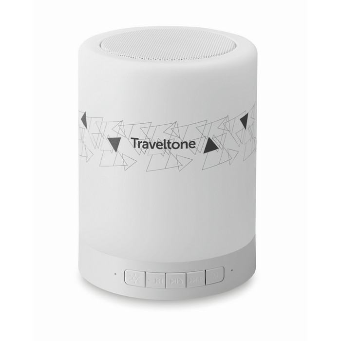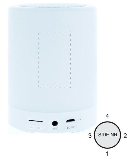 Table or camping wireless speaker with hands free function, SD card slot and regulating colour and brightness touch. 6 colours changing light. Rechargeable Li-Ion 2000 mAh. Output data: 3W. Playing time aprox. 2h.