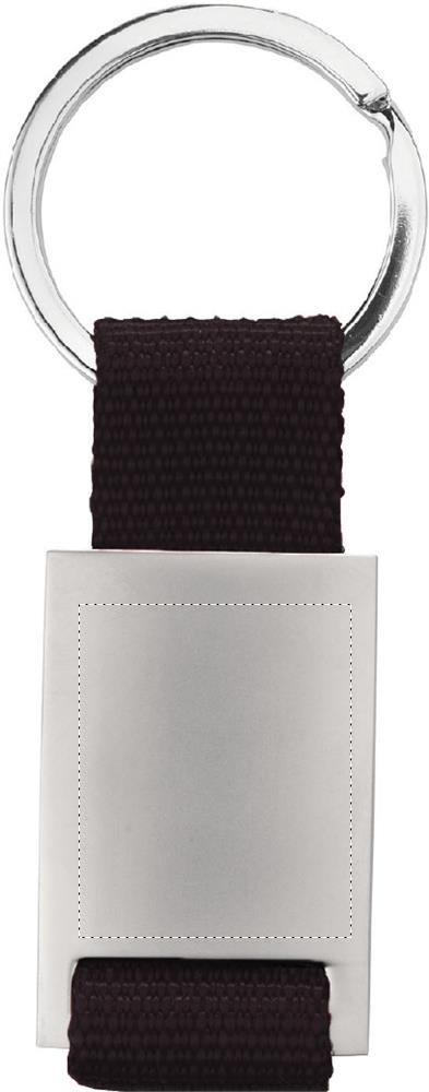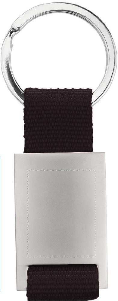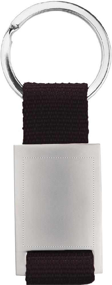 Metal rectangular key ring with coloured polyester webbing. Individually packed in a carton gift box.