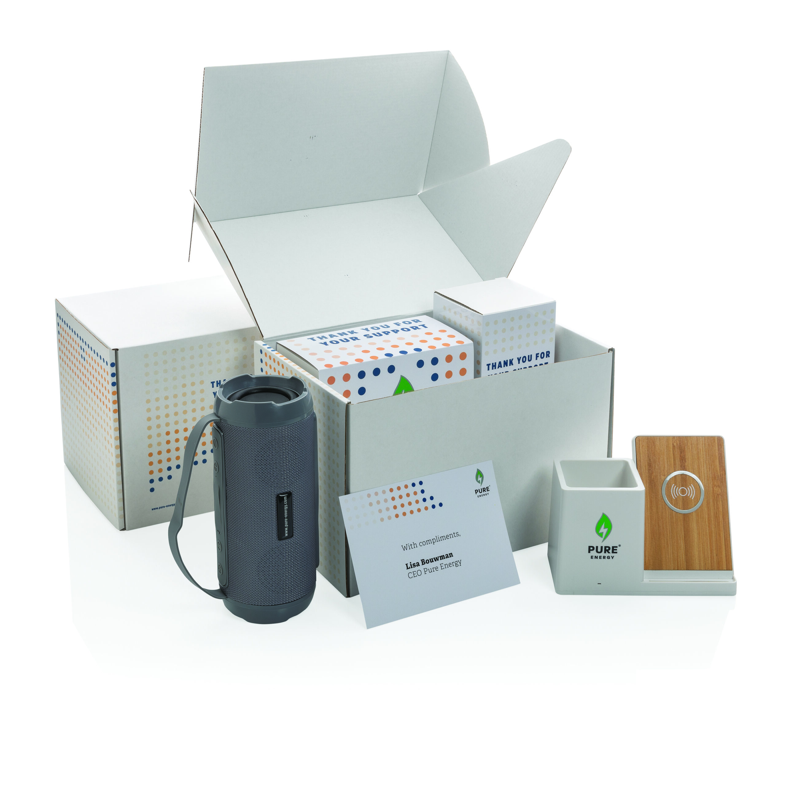 Technology Welcome Kit. Στην εταιρία μας θα βρείτε δώρα καλοσωρίσματος για τους υπαλλήλους σας με δυνατότητα εκτύπωσης του λογοτπου σας. Φτιάξτε τα δικά σας εταιρικά κουτιά με το δικό σας εικαστικό για κάθε περίσταση. Διαλέξτε τα διαφημιστικά είδη και εμείς θα σας φτιάξουμε την τέλεια σύνθεση για τους συνεργάτες ή και τους πελάτες σας. Ανάλογα το budget που θέλετε να δώσετε για τα διαφημιστικά δώρα σας, σας φτιάχνουμε και τις ανάλογες προτάσεις. Βρείτε δώρα για κάθε εταιρική προβολή και δώστε χαρά στους συνεργάτες σας με τα corporate gift box της Fun Promotion.