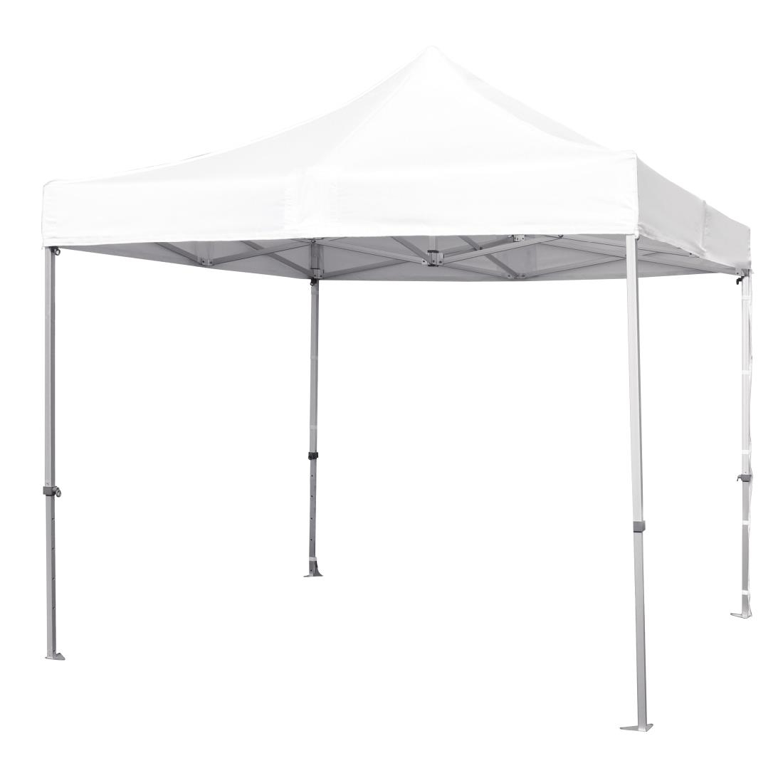 Folding outdoor tent 3×4.5 mt. It has a durable aluminum frame (profile 40x40mm). With oxford fabric in white / blue color. Optionally available with fabric that covers the 3 sides (side and back) and is easy to install.