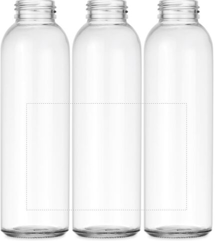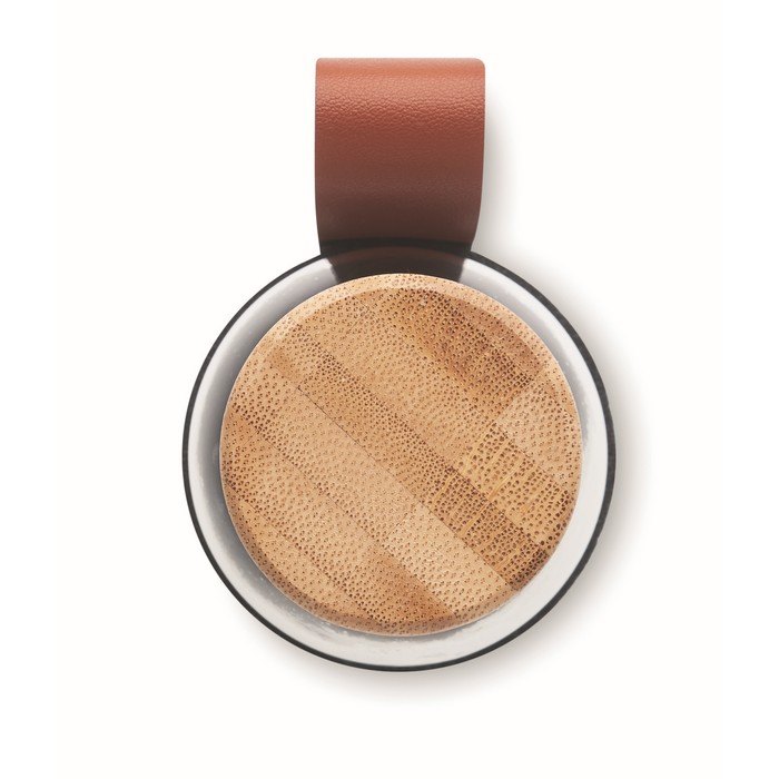 Glass bottle with bamboo lid with PU handle and RPET polyester pouch. Capacity: 500 ml.