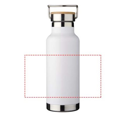 Double-walled stainless steel vacuum construction with copper insulation, which allows beverages to stay cold for 48 hours or hot for at least 12 hours. The construction also prevents condensation on the outside of the bottle. Screw-on lid with wood detail. On-trend, durable powder coating. Volume capacity is 480ml. Presented in an Avenue gift box.