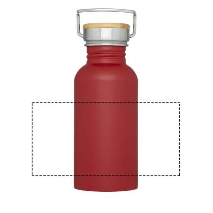Single-walled stainless steel bottle with screw-on lid. The lid features a bamboo top, as well as a handle for easy carrying. Volume capacity is 550 ml. Presented in an Avenue gift box.