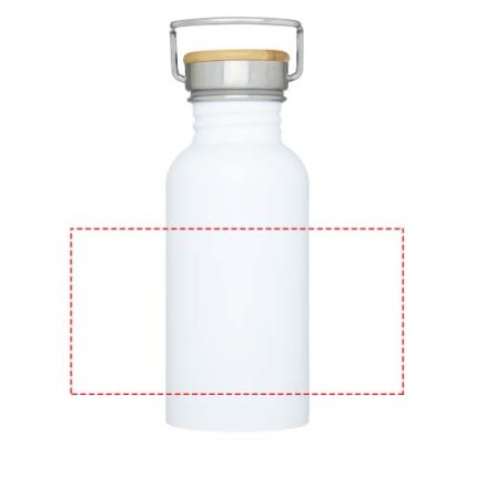 Single-walled stainless steel bottle with screw-on lid. The lid features a bamboo top, as well as a handle for easy carrying. Volume capacity is 550 ml. Presented in an Avenue gift box.