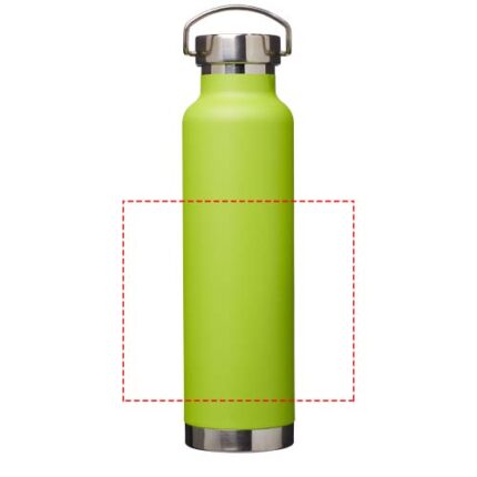 Durable, double wall stainless steel vacuum construction with copper insulation, which allows your beverage to stay cold for 48 hours and at least 12 hours for hot beverages. The construction also prevents condensation on the outside of the bottle. On-trend, durable powder coating. Stainless steel screw-on spill resistant lid with durable stainless steel hand loop. Wide opening for comfortable filling and pouring. Perfect for ice cubes. Volume capacity is 650ml. Presented in an Avenue gift box.