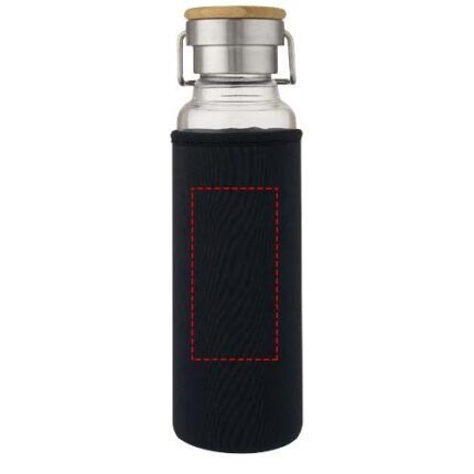 Single-walled borosilicate glass bottle with neoprene protective sleeve. Features a screw-on lid with bamboo top, as well as a handle for easy carrying. The bottle is made from 100% durable borosilicate glass which conserves the freshness of the beverage, and it does not contain any harmful chemicals. BPA-free, tested and approved under German Food Safe Legislation (LFGB). Tested and approved for phthalates content according to REACH regulations. The bamboo used is from sustainable, environmentally and socially responsible sources. Volume capacity is 660 ml. By removing the neoprene sleeve and lid the bottle is dishwasher safe. Presented in a recycled cardboard gift box.