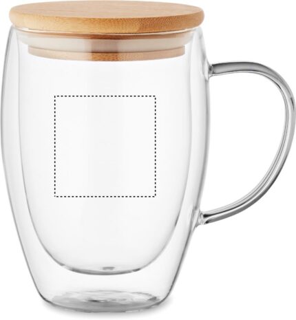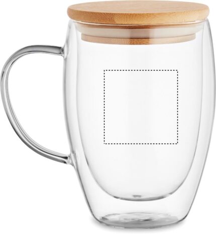 Double wall borosilicate glass mug with handle and bamboo. Capacity: 300 ml.