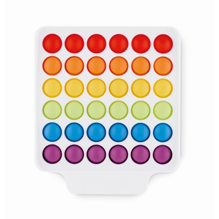 Pop it fidget toy made of coloured silicone and in ABS case with popping bubbles.