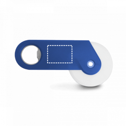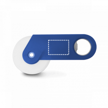 Pizza cutter with bottle opener. 132 x 63 x 8 mm