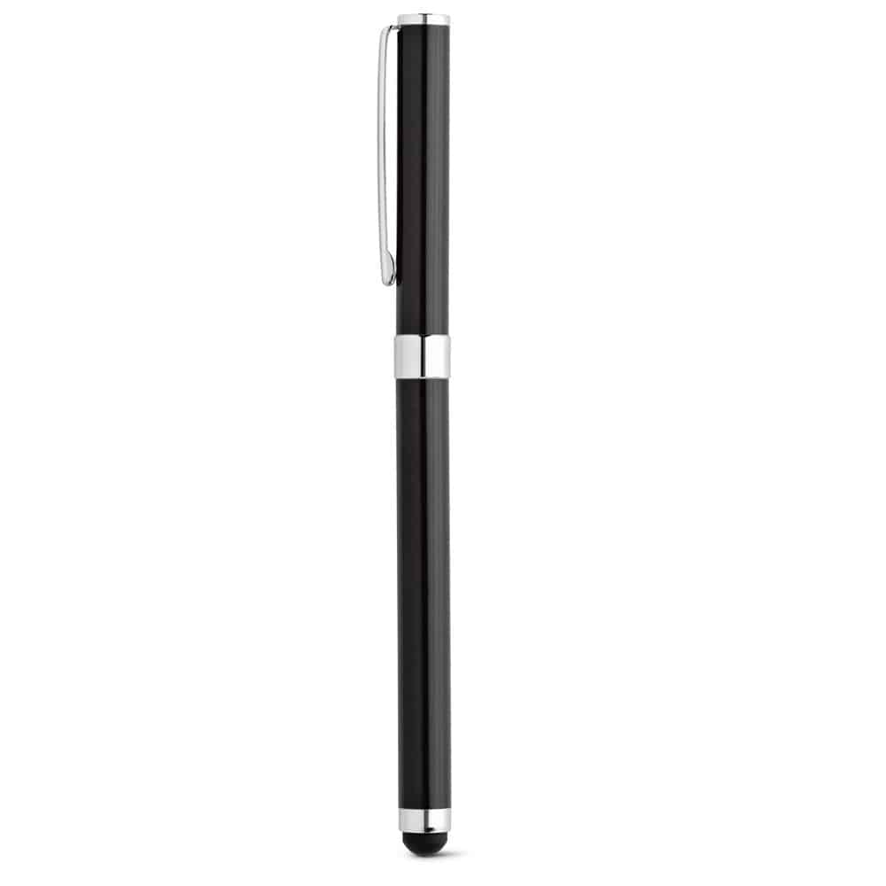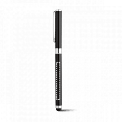 Metal roller ball metal with shiny body and chrome details. The detail of the touch tip makes this gift sophisticated and adaptable to new technologies. Black ink. Supplied with a disassembled gift box. ø9 x 141 mm | Case: 150 x 15 x 19 mm