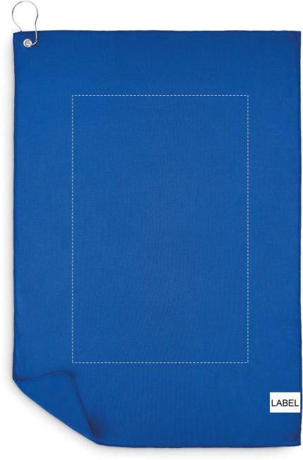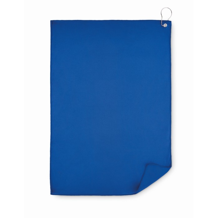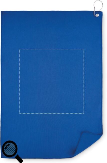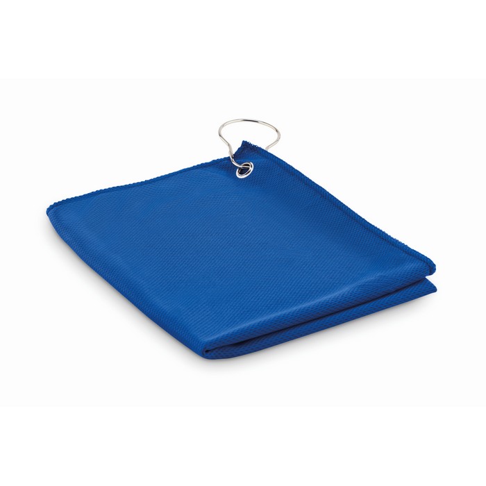 RPET polyester golf towel with iron hook hanger. Towel size: 40x60cm.