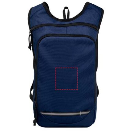 Made from 100% GRS recycled and water repellent fabric, the Trails backpack features one zippered front pocket and one zippered main compartment, and is compatible with a hydration water bladder. Reflective stripes for visibility and mesh backside for carrying comfort , making it a great sustainable choice for outdoor activities.