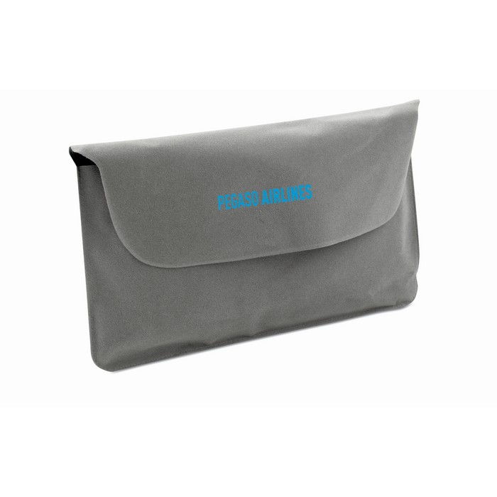 Travel set including a velvet inflatable pillow, eye mask and earplugs. All packed in a velvet pouch.
