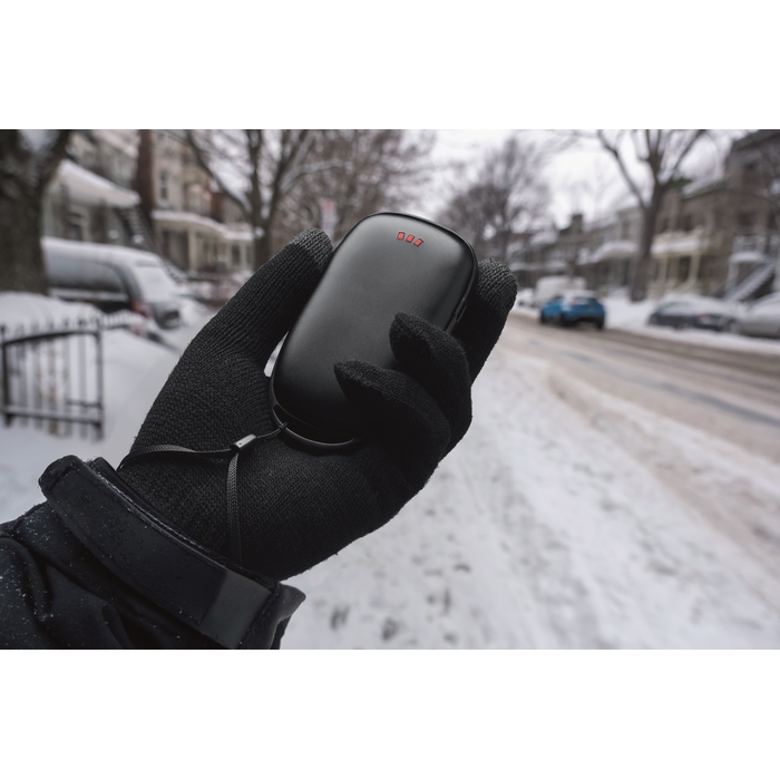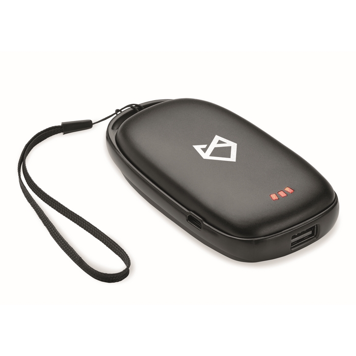 Electric handwarmer in aluminium with 3 intensity levels (30ºC, 37ºC and 50ºC) and a built in 4000 mAh power bank. Includes hand strap. In/Output: Type-C. Output USB-A. Output: DC5V/2A. Type-C to Type-C cable with Type-A adapter.
