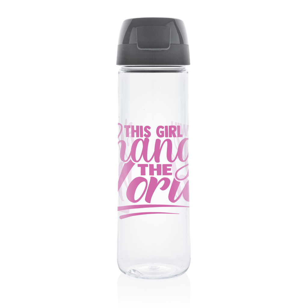 Made in Italy 0,75L water bottle with 1 hand opening. Made with Tritan™ Renew – an innovative plastic that utilises as much as 50% recycled material in place of fossil-based resources. Clear, clean and sustainable without any compromise on performance and durability. Recycled material verified by using ISCC Mass Balance Approach. Tritan Renew is powered by a unique process that breaks down waste plastic back into its basic chemical building blocks, allowing plastic materials to be recycled time and time again. This may cause minor imperfections on the product body but adds to its recycled character. Spill proof lid.