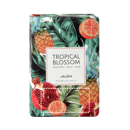 Set of soaps belonging to the Tropical Blossom collection based on vegetable soap and elegant fragrances enriched with olive oil – characteristic for its moisturizing properties. When used, it creates a creamy lather that leaves the skin clean, purified and lightly scented. Traditionally produced in Portugal and suitable for all skin types. Capacity up to 160 g. Environmentally friendly product.Colour 128: Fruit lineColour 129: Leaf line 90 x 60 x 30 mm