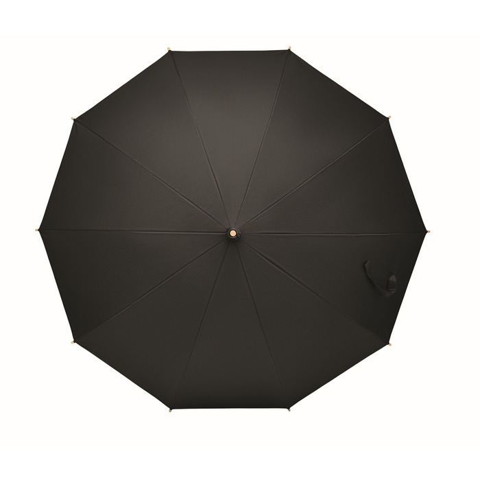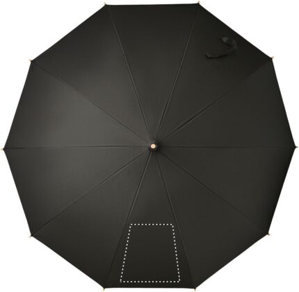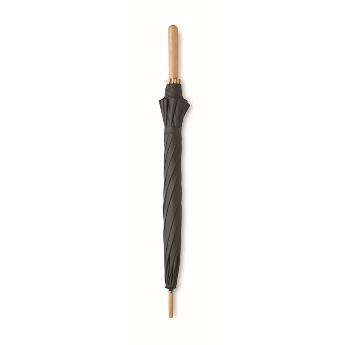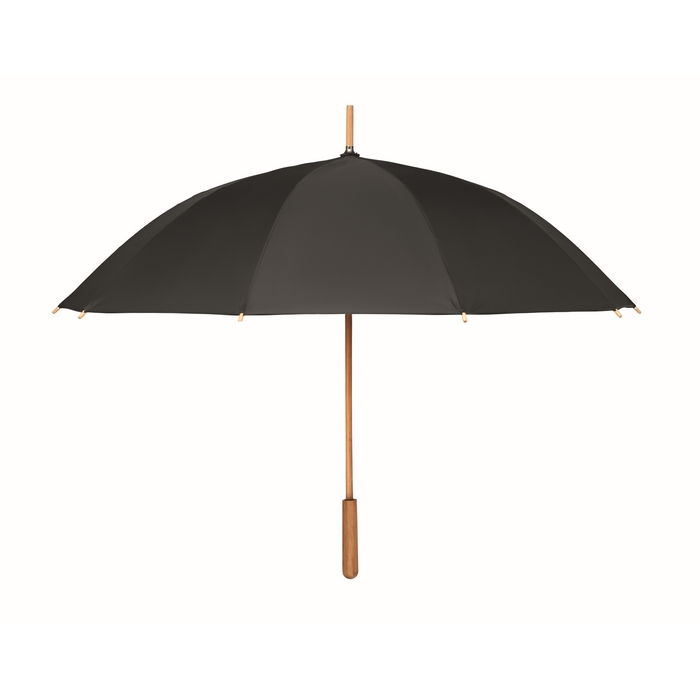 23.5 inch manual open windproof umbrella in 190T RPET pongee material with bamboo shaft, tips and handle. Fibre-glass ribs. Manual closure. Bamboo is a natural product, there may be slight variations in colour and size per item, which can affect the final decoration outcome.