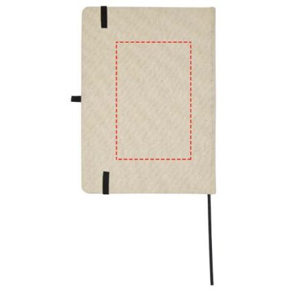 Notebook made from organic cotton with 120 pages of 70 g/m2 recycled white lined paper. Featuring a black ribbon marker, elastic closure, and a pen loop. Organic cotton is grown using sustainable farming practices that help to protect the environment and promote biodiversity. By avoiding the use of harmful chemicals, organic cotton farming can help to reduce soil and water pollution, as well as the risk of health problems for farmers and their families.