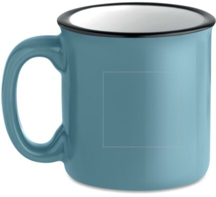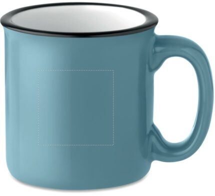 Ceramic vintage style mug of 240 ml capacity. Individual packaging in white carton box. Ceramic transfer is dishwasher safe.