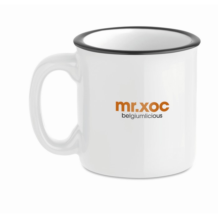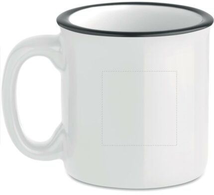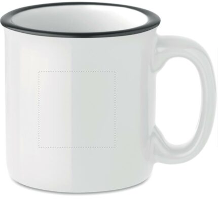 Ceramic vintage style mug of 240 ml capacity. Individual packaging in white carton box. Ceramic transfer is dishwasher safe.