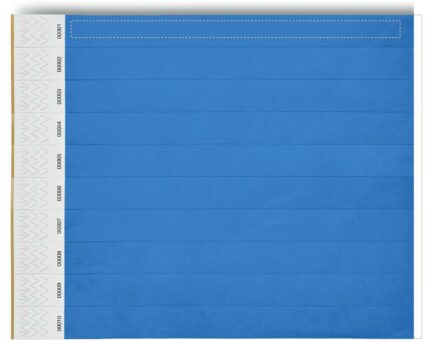 One sheet of 10 event wristbands. DuPont ™ Tyvek® 19mm wide. Including unique numbering on each wristband.