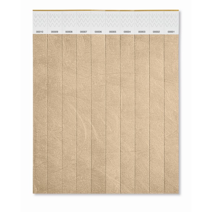 One sheet of 10 event wristbands. DuPont ™ Tyvek® 19mm wide. Including unique numbering on each wristband.